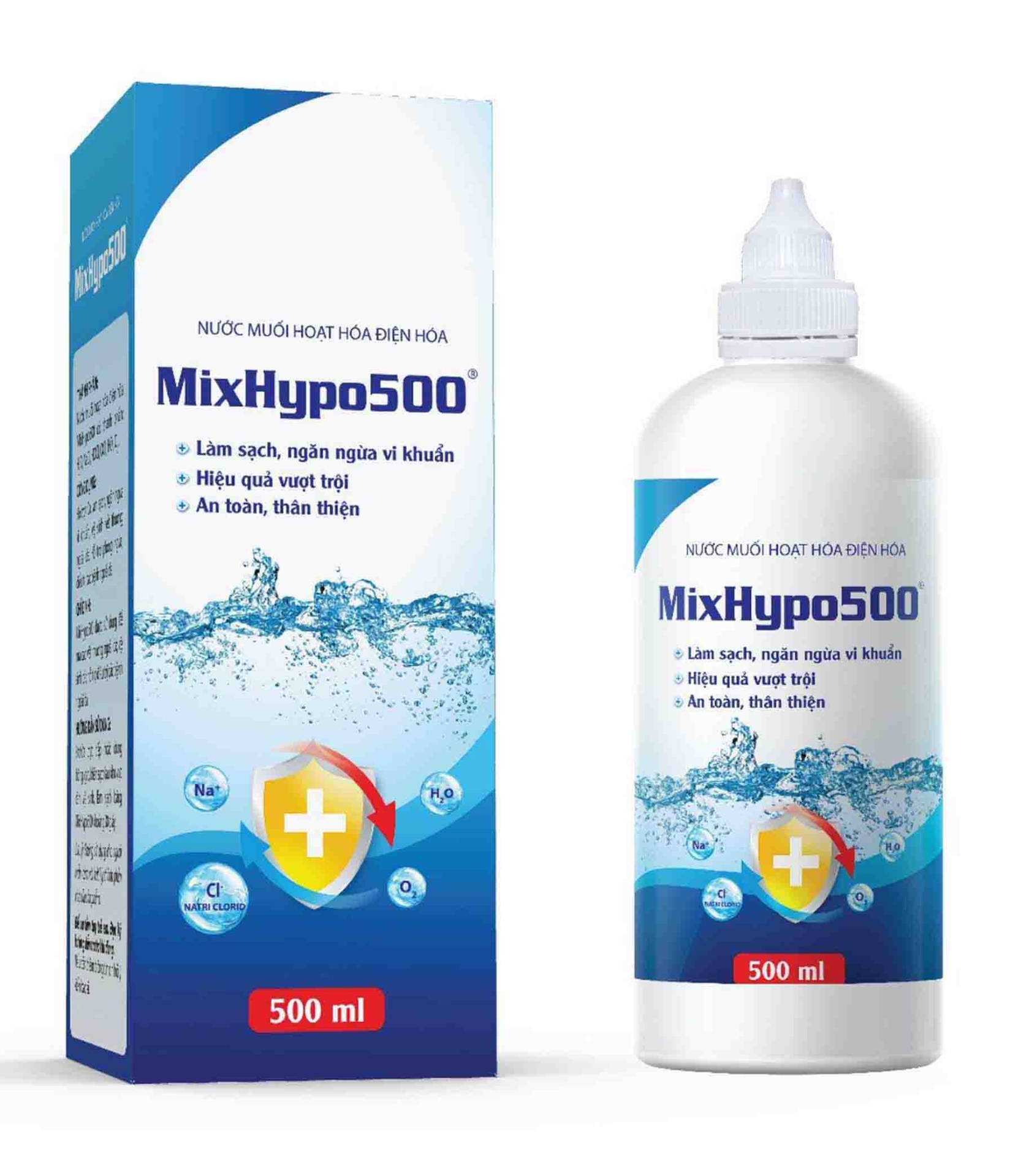 MixHypo500 là dung dịch nước muối hoạt hóa điện hóa siêu ôxi hóa có thành phần: H2O, NaCl, HOCl, OCl-, HO-, O2. MixHypo500 là chất lỏng không màu có mùi clo nhẹ, có khả năng làm sạch và khử khuẩn. MixHypo500 được đặc trưng bởi các chỉ số nồng độ ion hydro (pH: 6÷8), thế ôxy hóa khử (ORP: 750 ÷ 950mV), nồng độ clo hoạt tính (50-500 mg/lít, tùy mục đích sử dụng).