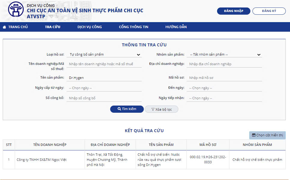 Công bố lưu hành tại Chi cục An toàn vệ sinh thực phẩm thành phố Hà Nội